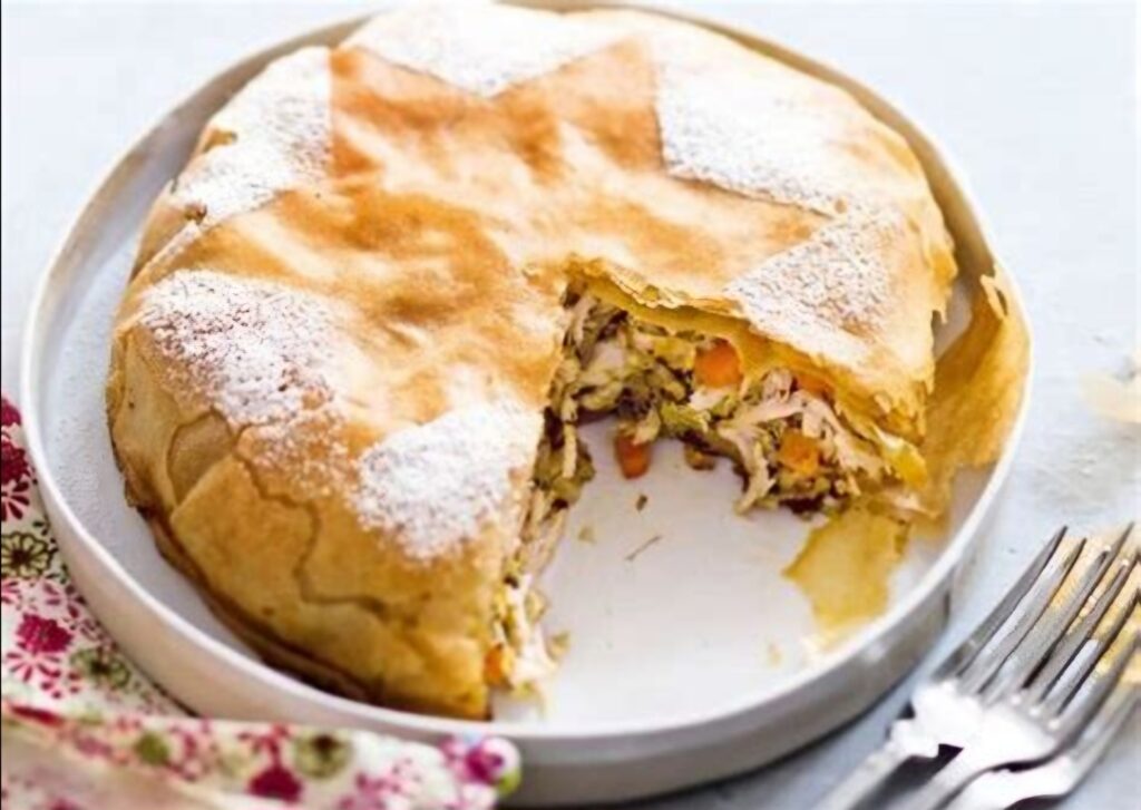 البسطيلة المغربية هي واحدة من أشهر الأطباق التقليدية الفاخرة في المغرب، وتُعتبر من الأطباق التي تُقدم في المناسبات والأعراس. تتميز البسطيلة بمزيجها الفريد من النكهات الحلوة والمالحة، حيث تتكون من طبقات من عجينة الورقة (أو عجينة البسطيلة) محشوة بلحم الدجاج المطهو مع اللوز والبيض والبهارات العطرية، وتُزين بالسكر الناعم والقرفة. يمكن تحضيرها أيضًا بالمأكولات البحرية أو الحمام، لكن النسخة بالدجاج هي الأكثر شهرة.