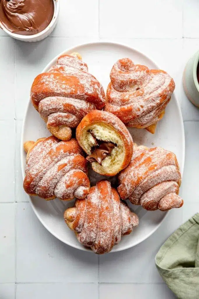 اتركي الكرواسون ليبرد قليلًا، ثم رشي عليه السكر البودرة أو قدميه كما هو.