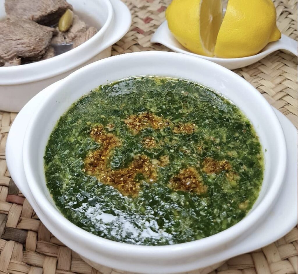 4. إضافة التقلية إلى الملوخية (5 دقائق):
