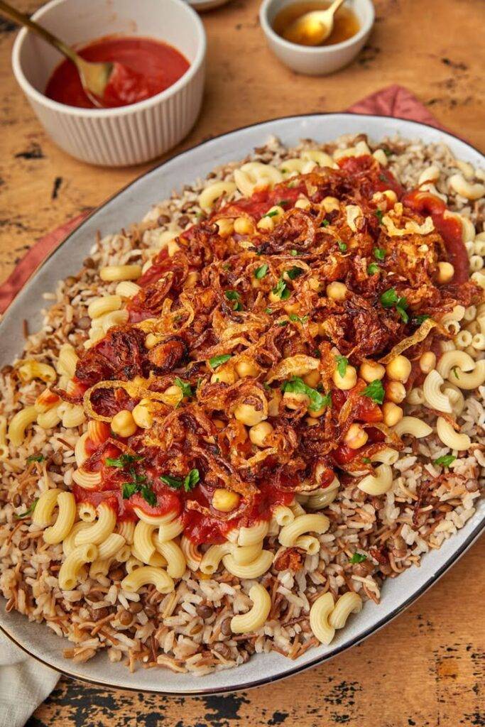 الكشري المصري هو أحد أشهر الأطباق الشعبية في مصر، ويُعتبر وجبة متكاملة غنية بالكربوهيدرات والبروتينات. يتكون من مزيج من الأرز، العدس، المكرونة، والبصل المقرمش، ويُقدم مع صلصة الطماطم المتبلة والدقة الحارة. يُعد من الأكلات الاقتصادية اللذيذة التي تُحبها جميع الفئات في المجتمع المصري، ويُباع في المطاعم الشعبية وعلى العربات المتجولة في الشوارع.
